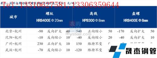 從區(qū)域價(jià)差來(lái)看,今日華北地區(qū)與杭州市場(chǎng)螺紋鋼價(jià)差繼續(xù)反向擴(kuò)大;東北、華中地區(qū)與杭州市場(chǎng)價(jià)差繼續(xù)縮小;華南地區(qū)與杭州市場(chǎng)螺紋鋼價(jià)差正向擴(kuò)大。