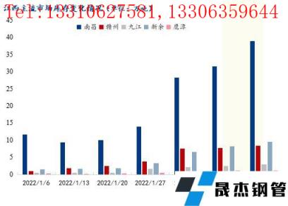 從本周各主流市場(chǎng)庫(kù)存走勢(shì)來(lái)看,各主流市場(chǎng)庫(kù)存均繼續(xù)累積。其中南昌市場(chǎng)庫(kù)存增幅最大,增幅達(dá)到23.20%;九江和新余市場(chǎng)庫(kù)存增幅在15%-17%之間;贛州和鷹潭市場(chǎng)庫(kù)存增幅在10%以下。目前來(lái)看,無(wú)縫厚壁鋼管廠家正常發(fā)貨,雖然省內(nèi)多數(shù)商家已經(jīng)開(kāi)市,但只有少數(shù)工地零星啟動(dòng),市場(chǎng)終端需求整體偏弱,成交清淡,以投機(jī)鎖貨為主,市場(chǎng)庫(kù)存持續(xù)累積。
