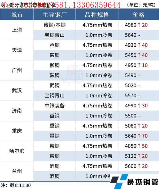 注:截止12:00部分城市冷熱卷價格
