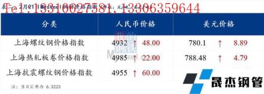 分地區(qū)方面,上海螺紋鋼價格指數(shù)4932,上漲48.0;上海熱軋板卷價格指數(shù)4985,上漲22.0。(單位:元/噸)