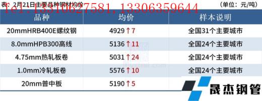 ◎調研數據顯示,2月22日福建省短流程無縫厚壁鋼管廠家基本全線復產;目前廠內庫存在0.32-2.3萬噸,與去年同期相比增加約3萬噸。詳情>>