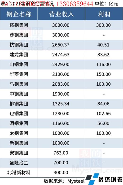 免責聲明:本網站(山東聊城晟杰無縫鋼管廠www.51pvc.cn)刊載的“16家鋼企2021年營收超2.7萬億元”等均源于網絡,版權歸原作者所有,且僅代表原作者觀點,本文所載信息僅供參考。轉載僅為學習與交流之目的,如無意中侵犯您的合法權益,請及時聯系刪除。本網站刊登此篇文章并不意味著本站贊同其觀點或證實其內容的真實性,我們不對其科學性、嚴肅性等作任何形式的保證。如果侵犯了您的版權,請盡快聯系我們予以撤銷,謝謝合作!