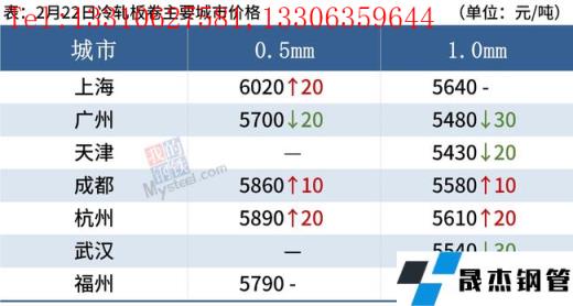 冷軋板卷:2月22日,全國(guó)24個(gè)主要城市1.0mm冷卷均價(jià)5580元/噸,較上個(gè)交易日上漲4元/噸。今日黑色期貨呈現(xiàn)高開(kāi)低走的態(tài)勢(shì),并且午后期貨盤(pán)面大幅跳水,現(xiàn)貨市場(chǎng)較為冷清,詢單人數(shù)明顯減少。無(wú)縫厚壁鋼管廠家方面,進(jìn)入2月下旬,各大無(wú)縫厚壁鋼管廠家結(jié)算陸續(xù)公布,據(jù)了解,AG對(duì)上海地區(qū)冷軋結(jié)算價(jià)到庫(kù)5470元/噸,BG對(duì)上海地區(qū)冷軋結(jié)算價(jià)到庫(kù)5450元/噸,稍有盈利空間。下游方面,下游終端企業(yè)以謹(jǐn)慎觀望為主,再加上現(xiàn)處于銷(xiāo)售淡季,需求持續(xù)疲軟。綜合來(lái)看,故預(yù)計(jì)23日國(guó)內(nèi)冷軋板卷價(jià)格或?qū)⒄鹗幤踹\(yùn)行。