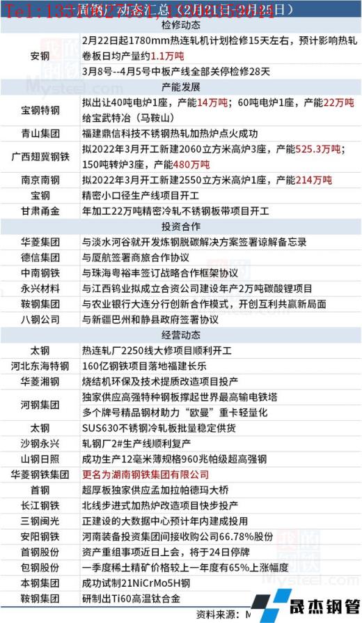 據(jù)不完全統(tǒng)計(jì),本周(2月21日-2月25日)有1家無縫厚壁鋼管廠家發(fā)布檢修動(dòng)態(tài),具體如下: