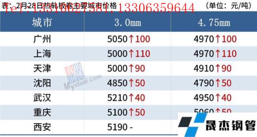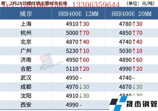 2月28日,國內厚壁無縫鋼管市場多數上漲,唐山普方坯出廠價穩報4550元/噸。隨著天氣回暖,下游終端及投機性需求均有好轉。今日黑色期貨市場普漲,部分商家順勢跟漲,但各品種、地區表現有所分化。