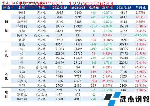 免責聲明:本網站(山東聊城晟杰無縫鋼管廠www.51pvc.cn)刊載的“周報:大宗原材料價格周報(2.21-2.25)”等均源于網絡,版權歸原作者所有,且僅代表原作者觀點,本文所載信息僅供參考。轉載僅為學習與交流之目的,如無意中侵犯您的合法權益,請及時聯系刪除。本網站刊登此篇文章并不意味著本站贊同其觀點或證實其內容的真實性,我們不對其科學性、嚴肅性等作任何形式的保證。如果侵犯了您的版權,請盡快聯系我們予以撤銷,謝謝合作!