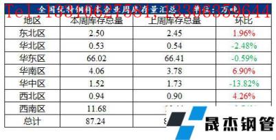 1、據對全國29個城市的貿易商跟蹤,現全國優特鋼棒材樣本總庫存87.24萬噸,環比下降0.68萬噸,降幅0.77%,同比下降17.97萬噸,降幅17.08%。