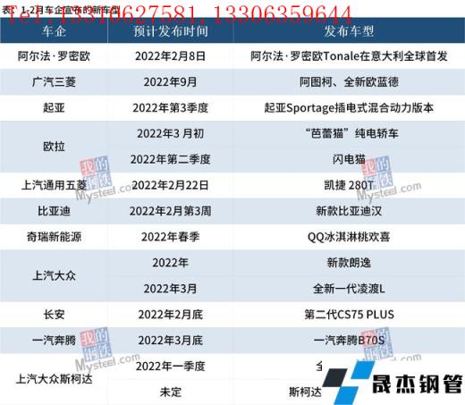 免責聲明:本網站(山東聊城晟杰無縫鋼管廠www.51pvc.cn)刊載的“1-2月19家車企發布新車型規劃”等均源于網絡,版權歸原作者所有,且僅代表原作者觀點,本文所載信息僅供參考。轉載僅為學習與交流之目的,如無意中侵犯您的合法權益,請及時聯系刪除。本網站刊登此篇文章并不意味著本站贊同其觀點或證實其內容的真實性,我們不對其科學性、嚴肅性等作任何形式的保證。如果侵犯了您的版權,請盡快聯系我們予以撤銷,謝謝合作!