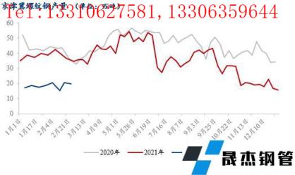 庫存方面,因庫存量基數較小,加之京津冀建材無縫厚壁鋼管廠家產量恢復正?;蛟?月份,因此即便庫存累積,庫存峰值將低于2020、2021年水平,或與2017年、2018年庫存量相差不大;