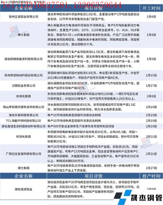 1-2月國內鋁項目開工、投產情況