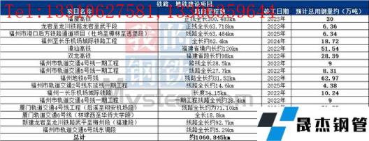未來(lái)2-3年福建省鐵路、地鐵項(xiàng)目在建新建線路總長(zhǎng)約1060.845公里,據(jù)不完全統(tǒng)計(jì)預(yù)計(jì)總用鋼量約283.082萬(wàn)噸左右。