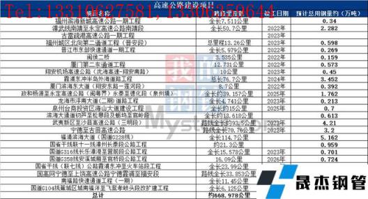 未來(lái)2-3年福建省高速公路在建新建線路總長(zhǎng)約668.978公里,據(jù)不完全統(tǒng)計(jì)預(yù)計(jì)總用鋼量約30.235萬(wàn)噸左右。