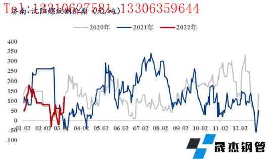 2月螺紋北京-沈陽月均價差+42元/噸,廣州-沈陽月均價差+33元/噸,上海-沈陽月均價差-89元/噸,濟南-沈陽月均價差+40元/噸。雖然本地尚未全面啟動,但本地?zé)o縫厚壁鋼管廠家跟漲節(jié)奏較快,帶動市場報價整體上漲,即東北價格繼續(xù)處在較高水平,南北無合適的價差已經(jīng)成為常態(tài)。