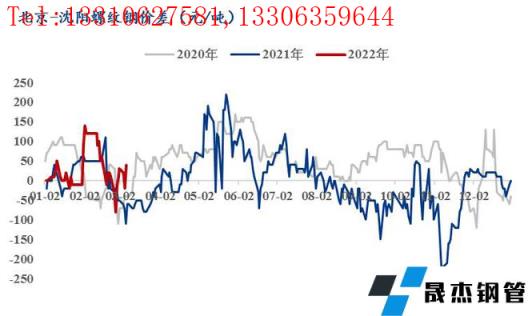 三、南北區(qū)域螺紋鋼價差情況: