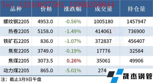 免責聲明:本網站(山東聊城晟杰無縫鋼管廠www.51pvc.cn)刊載的“2022年03月09日午報:鋼價多數下跌,動力煤期貨跌逾5%”等均源于網絡,版權歸原作者所有,且僅代表原作者觀點,本文所載信息僅供參考。轉載僅為學習與交流之目的,如無意中侵犯您的合法權益,請及時聯系刪除。本網站刊登此篇文章并不意味著本站贊同其觀點或證實其內容的真實性,我們不對其科學性、嚴肅性等作任何形式的保證。如果侵犯了您的版權,請盡快聯系我們予以撤銷,謝謝合作!