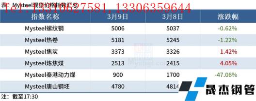 ◎ 截止3月9日,調(diào)研的山東11家長(zhǎng)短流程無縫厚壁鋼管廠家綜合廢鋼比19.88%,周環(huán)比增7.81%;廢鋼消耗總量在13.76萬噸,周環(huán)比增2.27萬噸;廢鋼庫(kù)存為13.79萬噸,周環(huán)比減0.97萬噸。詳情>>