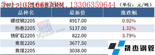 截至3月11日收盤,螺紋鋼2205收4917元/噸,漲0.92%;熱卷2205收5137元/噸,漲1.32%;鐵礦石2205收822元/噸,漲3.79%。