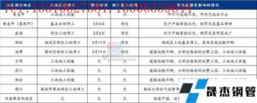 目前,各地均嚴格落實疫情防控政策,防止發生外溢,多數人員和貨物流通受到不同程度影響。根了解,目前山東地區鋼鐵企業生產暫時影響不大,但貿易流通和終端施工受到較大影響。山東資訊團隊近日調研了山東各地市的工地施工及貿易流通情況,詳情見下表: