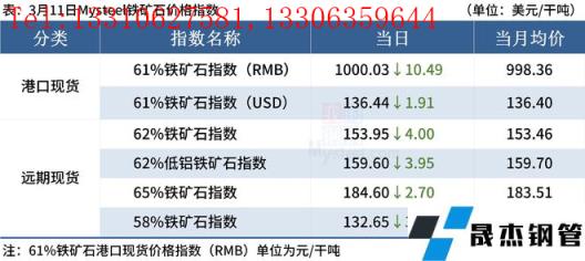 ◎ 3月11日,全國主港鐵礦石成交98.50萬噸,環比減11.3%;237家主流貿易商建材成交19.43萬噸,環比增11%。