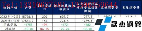 綜上所述,1-2月粗鋼實際消費同比降幅僅為5%,明顯高于市場預期。但從后期供需預估表現來看,厚壁無縫鋼管復產節奏或高于需求釋放力度,進而使得消費承壓,價格上漲難度加大。