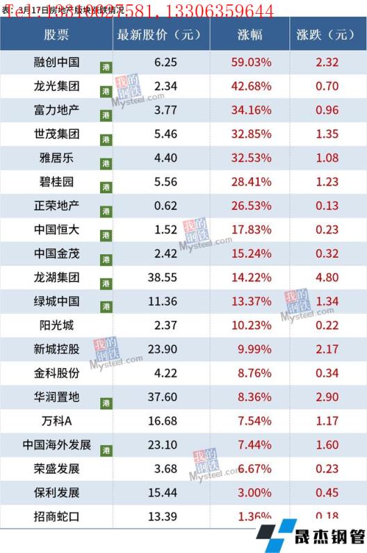 免責聲明:本網站(山東聊城晟杰無縫鋼管廠www.51pvc.cn)刊載的“受利好消息刺激,房地產股大幅反彈”等均源于網絡,版權歸原作者所有,且僅代表原作者觀點,本文所載信息僅供參考。轉載僅為學習與交流之目的,如無意中侵犯您的合法權益,請及時聯系刪除。本網站刊登此篇文章并不意味著本站贊同其觀點或證實其內容的真實性,我們不對其科學性、嚴肅性等作任何形式的保證。如果侵犯了您的版權,請盡快聯系我們予以撤銷,謝謝合作!