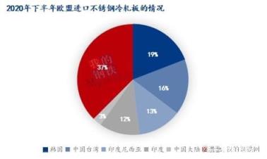 同期,歐盟不銹鋼冷軋板進口主要地區情況,從韓國進口約7.4萬噸,市場份額約4.8%;從中國臺灣進口約6.3萬噸,市場份額約4.1%;從印度尼西亞進口約4.94萬噸,市場份額約3.2%;從印度進口約4.55萬噸,市場份額約3%。