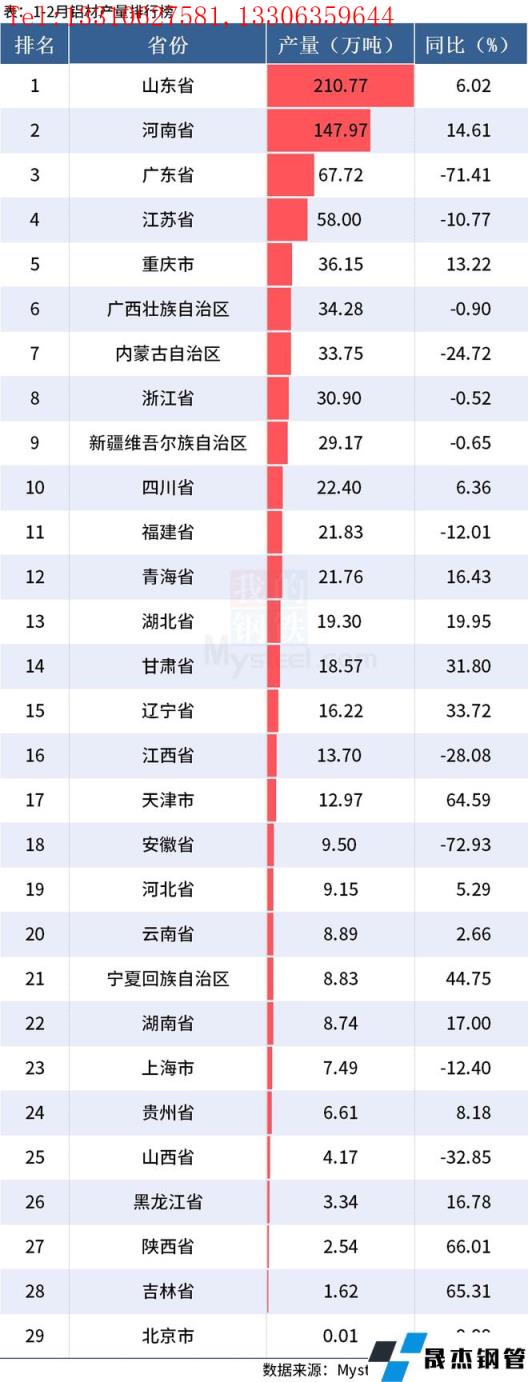 免責聲明:本網站(山東聊城晟杰無縫鋼管廠www.51pvc.cn)刊載的“統計局:1-2月全國分省市鋁材、氧化鋁產量出爐”等均源于網絡,版權歸原作者所有,且僅代表原作者觀點,本文所載信息僅供參考。轉載僅為學習與交流之目的,如無意中侵犯您的合法權益,請及時聯系刪除。本網站刊登此篇文章并不意味著本站贊同其觀點或證實其內容的真實性,我們不對其科學性、嚴肅性等作任何形式的保證。如果侵犯了您的版權,請盡快聯系我們予以撤銷,謝謝合作!