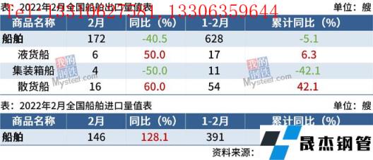 免責聲明:本網站(山東聊城晟杰無縫鋼管廠www.51pvc.cn)刊載的“海關總署:2月中國船舶進口146艘,同比增長128.1%”等均源于網絡,版權歸原作者所有,且僅代表原作者觀點,本文所載信息僅供參考。轉載僅為學習與交流之目的,如無意中侵犯您的合法權益,請及時聯系刪除。本網站刊登此篇文章并不意味著本站贊同其觀點或證實其內容的真實性,我們不對其科學性、嚴肅性等作任何形式的保證。如果侵犯了您的版權,請盡快聯系我們予以撤銷,謝謝合作!