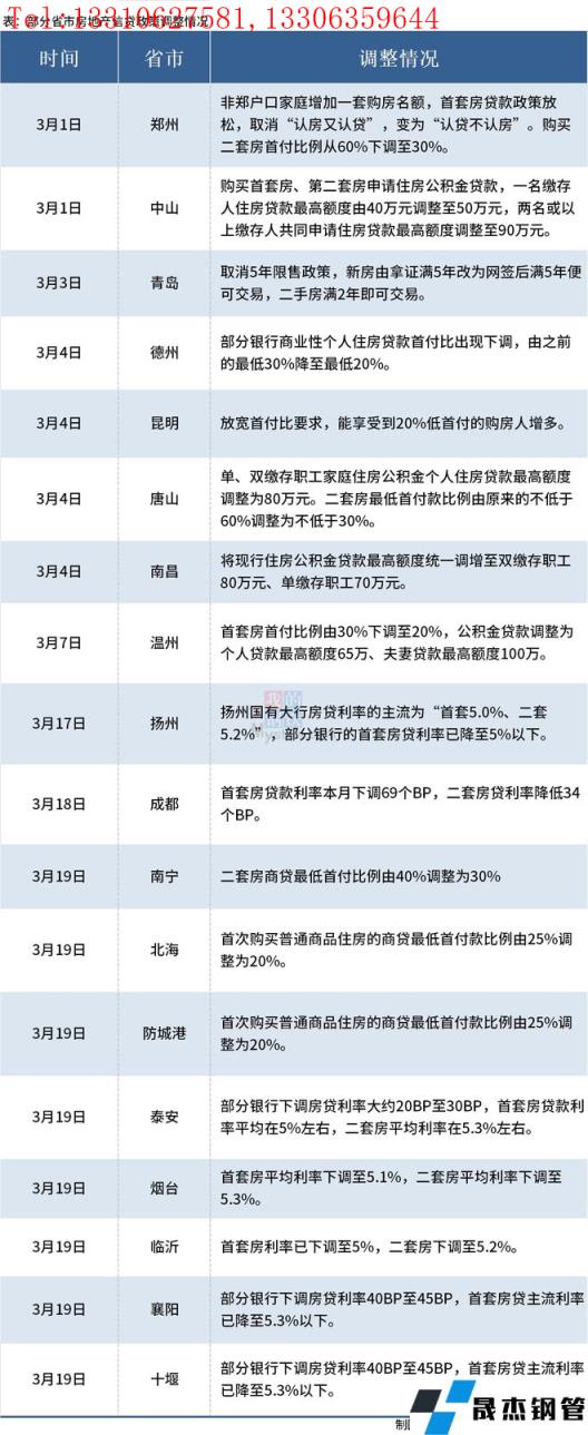 免責聲明:本網站(山東聊城晟杰無縫鋼管廠www.51pvc.cn)刊載的“3月以來近20個城市放松房貸政策,下調房貸利率和首付比例等”等均源于網絡,版權歸原作者所有,且僅代表原作者觀點,本文所載信息僅供參考。轉載僅為學習與交流之目的,如無意中侵犯您的合法權益,請及時聯系刪除。本網站刊登此篇文章并不意味著本站贊同其觀點或證實其內容的真實性,我們不對其科學性、嚴肅性等作任何形式的保證。如果侵犯了您的版權,請盡快聯系我們予以撤銷,謝謝合作!