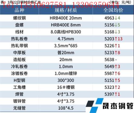 熱軋板卷:3月22日,全國24個主要城市4.75mm熱軋板卷均價5203元/噸,較上個交易日上漲13元/噸。黑色商品期貨尾盤小幅下跌,現貨成交情況開始轉弱,市場基本處于穩盤,部分地區有暗降的情況。目前全國各無縫厚壁鋼管廠家檢修基本完畢,供應逐漸恢復正常。需求方面來看,近期部分地區受疫情影響較重,需求釋放得到限制。綜合來看,近期市場基本處于平穩階段,供大于需預期存在,市場整體恐慌情緒有加重趨勢,預計短期熱軋卷板價格或將震蕩趨弱為主。