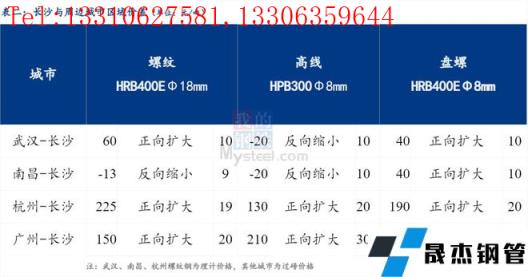 統(tǒng)一為理計單位后,武漢高于長沙60元/噸,南昌低于長沙13元/噸,杭州高于長沙225元/噸,廣州高于長沙150元/噸。