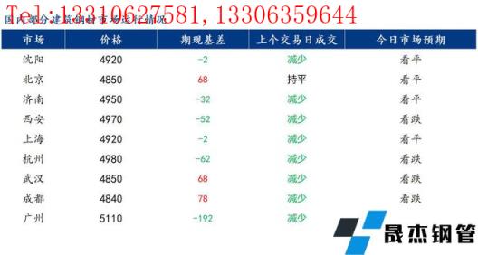 免責聲明:本網站(山東聊城晟杰無縫鋼管廠www.51pvc.cn)刊載的“2022年03月23日早報:國內建筑鋼材_無縫鋼管市場預計穩中偏弱運行”等均源于網絡,版權歸原作者所有,且僅代表原作者觀點,本文所載信息僅供參考。轉載僅為學習與交流之目的,如無意中侵犯您的合法權益,請及時聯系刪除。本網站刊登此篇文章并不意味著本站贊同其觀點或證實其內容的真實性,我們不對其科學性、嚴肅性等作任何形式的保證。如果侵犯了您的版權,請盡快聯系我們予以撤銷,謝謝合作!