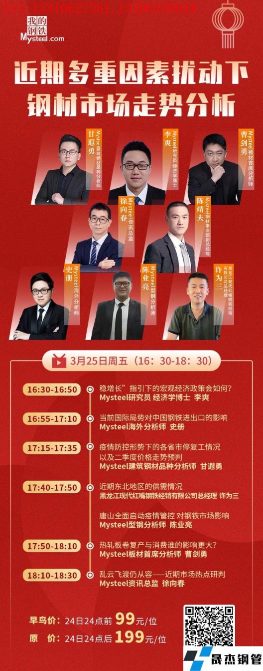 3月25日周五下午16:30,黑龍江現(xiàn)代紅嘴鋼鐵經(jīng)銷有限公司總經(jīng)理許為三、資訊總監(jiān)徐向春、經(jīng)濟(jì)學(xué)博士研究員李爽、板材首席分析師曹劍勇、建筑厚壁無縫鋼管品種分析師甘遐勇、型鋼分析師陳業(yè)亮及國際鋼鐵市場分析師史冊,將做客直播間,聊一聊近期多重因素?cái)_動下對鋼鐵市場的影響有哪些?
