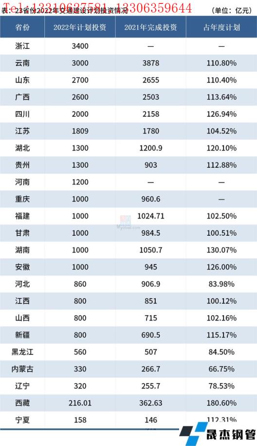 免責(zé)聲明:本網(wǎng)站(山東聊城晟杰無(wú)縫鋼管廠www.51pvc.cn)刊載的“23省份2022年交通建設(shè)計(jì)劃投資近3萬(wàn)億元”等均源于網(wǎng)絡(luò),版權(quán)歸原作者所有,且僅代表原作者觀點(diǎn),本文所載信息僅供參考。轉(zhuǎn)載僅為學(xué)習(xí)與交流之目的,如無(wú)意中侵犯您的合法權(quán)益,請(qǐng)及時(shí)聯(lián)系刪除。本網(wǎng)站刊登此篇文章并不意味著本站贊同其觀點(diǎn)或證實(shí)其內(nèi)容的真實(shí)性,我們不對(duì)其科學(xué)性、嚴(yán)肅性等作任何形式的保證。如果侵犯了您的版權(quán),請(qǐng)盡快聯(lián)系我們予以撤銷,謝謝合作!