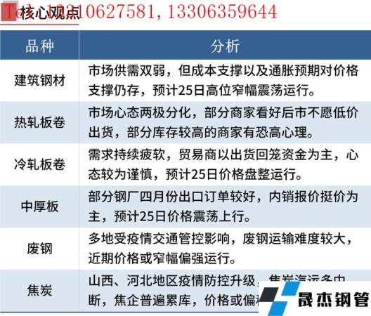 建筑厚壁無縫鋼管:3月24日,全國31個主要城市20mm三級抗震螺紋鋼均價(jià)4983元/噸,較上個交易日上漲18元/噸。本周螺紋鋼周產(chǎn)量連續(xù)第六周增加,總庫存由降轉(zhuǎn)升,廠庫連續(xù)第二周出現(xiàn)回升,表觀消費(fèi)基本持平。目前來看,近期全國疫情呈現(xiàn)局部高度聚集和多點(diǎn)散發(fā)態(tài)勢,多個地區(qū)厚壁無縫鋼管市場供需面均有不同程度影響,雖然部分區(qū)域陸續(xù)恢復(fù)運(yùn)行,但同時亦有其他區(qū)域疫情管控加嚴(yán)對于物流運(yùn)輸及工程施工形成制約,影響終端需求釋放。目前現(xiàn)貨市場仍處于供需雙弱的局面,但成本支撐以及通脹預(yù)期對價(jià)格支撐仍存。因此預(yù)計(jì)25日國內(nèi)建筑厚壁無縫鋼管價(jià)格或?qū)⒏呶徽鹗庍\(yùn)行為主。