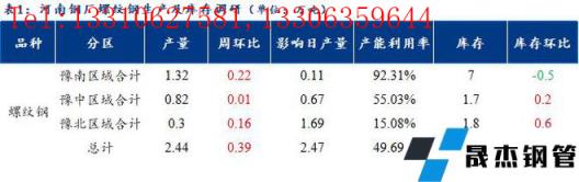1、調(diào)研數(shù)據(jù)顯示,統(tǒng)計的河南地區(qū)10家建筑厚壁無縫鋼管樣本無縫厚壁鋼管廠家中,河南省無縫厚壁鋼管廠家線盤日均產(chǎn)量0.73萬噸,較上周小幅增加0.12萬噸;檢修/限產(chǎn)影響建材日產(chǎn)量為0.4萬噸,產(chǎn)能利用率64.6%,較上周上升10.62%。