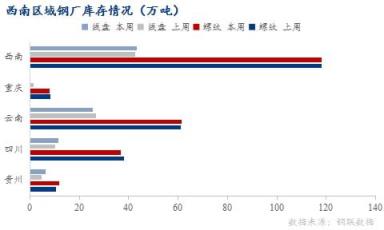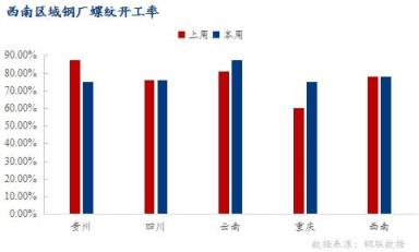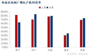 重慶區(qū)域:本周重慶區(qū)域螺紋鋼生產(chǎn)情況較上周無(wú)明顯變化,螺紋鋼產(chǎn)能利用率35.51%,環(huán)比增加4.67%;開(kāi)工率75%,環(huán)比增加15%;周產(chǎn)量3.8萬(wàn)噸,環(huán)比增加0.5萬(wàn)噸。