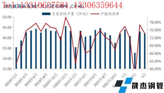 進入5月,國內馬口鐵供應持續增量空間有限,首先,局部區域疫情影響尚存,原料供應和成品材流出仍有一定受阻;其次,3月份交貨延遲,無縫厚壁鋼管廠家財務庫存有所累計,雖有個別無縫厚壁鋼管廠家在趕前期訂單,但是整體供應量有限;最后,5月份開始大部分無縫厚壁鋼管廠家均沒有大規模檢修計劃,整體開工相對正常。