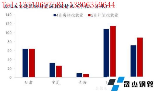 5月西北區(qū)域無(wú)縫厚壁鋼管廠家計(jì)劃總產(chǎn)量約為301.64萬(wàn)噸,較4月實(shí)際產(chǎn)量增加6.3萬(wàn)噸左右,其中陜西和新疆分別增加7.2萬(wàn)噸和6.6萬(wàn)噸,甘肅無(wú)明顯變化,青海和寧夏略有減量。