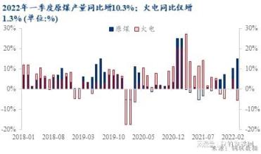 回顧2022年一季度我國煤炭及電力供需形勢發現,國內能源生產保障能力大幅增強:一季度全國原煤產量累計生產10.8億噸,同比增長10.3%。
