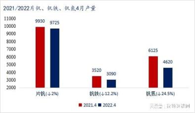2022年4月片釩產(chǎn)量相比2021年同比下降2%;釩鐵同比下降12.2%;釩氮合金同比下降24.5%。兩年相比片釩產(chǎn)量變動不大,釩氮合金及釩鐵產(chǎn)量下降明顯,其原因在于4月合金企業(yè)受到上下游雙向擠壓,利潤單薄甚至虧損,從而影響了4月開工率,進(jìn)入5月,合金企業(yè)依舊面臨倒掛問題,不排除開工率會進(jìn)一步收縮。