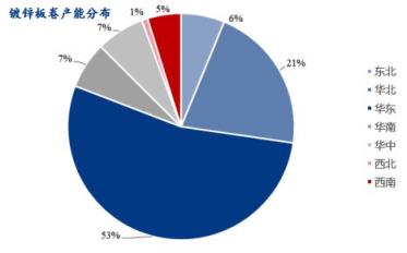 表1:國內主要區域鍍鋅板卷市場資源占比表(單位:%)
