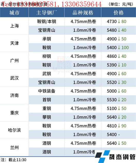 ◎天津:10日早盤冷軋市場價格下調100元/噸,1.0天鐵5410元/噸;首鋼5400元/噸,唐鋼5370元/噸,成交差。(單位:元/噸)