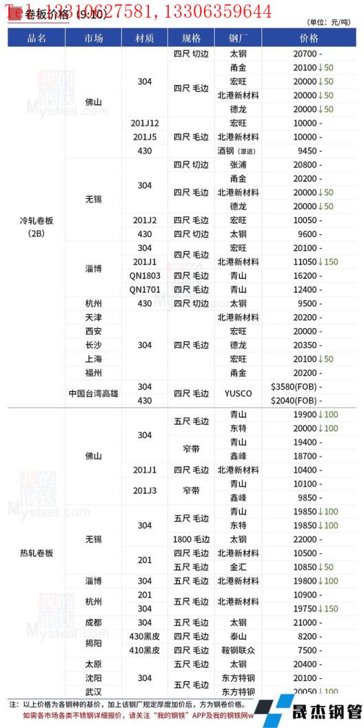受期貨盤走弱影響,5月10日早間佛山、無錫兩大主流不銹鋼現貨交易市場304冷熱軋均小幅下調50-100元/噸。目前佛山市場304熱軋五尺主流價格19800-20000元/噸,304冷軋民營毛邊基價主流在19900-20000元/噸。無錫市場304冷軋民營四尺毛邊基價主流20000元/噸,熱軋五尺毛邊報至19850元/噸。
