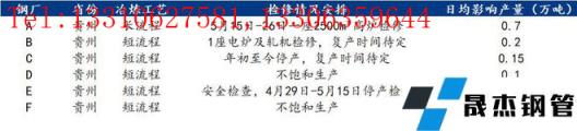 具體來看,高爐企業(yè)4月20日至30日安排一座1350m3高爐檢修,兩條棒線軋機輪流檢修,影響建筑厚壁無縫鋼管總產(chǎn)量近5萬噸,5月15至26日繼續(xù)安排一座2500m3高爐檢修,預(yù)計影響建筑厚壁無縫鋼管總產(chǎn)量7萬噸。電爐企業(yè)B無縫厚壁鋼管廠家一座電爐繼續(xù)停產(chǎn)檢修,棒材盤螺軋機輪流開工,日均影響產(chǎn)量0.2萬噸;C無縫厚壁鋼管廠家年初至今停產(chǎn),復(fù)產(chǎn)時間待定;D無縫厚壁鋼管廠家減產(chǎn),日均影響產(chǎn)量0.1萬噸;E無縫厚壁鋼管廠家4月29日至5月15日停產(chǎn)檢修,日均影響產(chǎn)量0.15萬噸;F無縫厚壁鋼管廠家減產(chǎn),日均影響產(chǎn)量0.05萬噸。