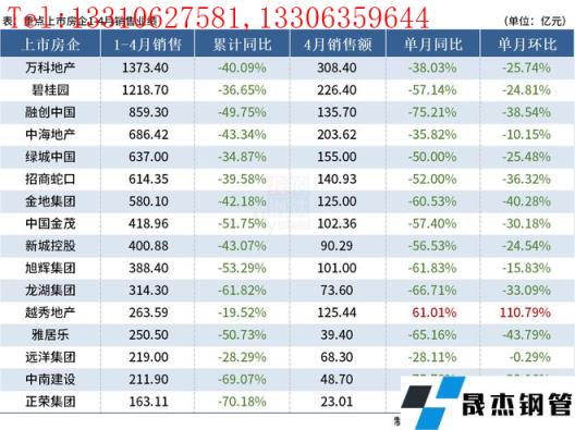 免責(zé)聲明:本網(wǎng)站(山東聊城晟杰無縫鋼管廠www.51pvc.cn)刊載的“16家重點房企4月銷售同比降幅擴(kuò)大,樓市“小陽春”未現(xiàn)”等均源于網(wǎng)絡(luò),版權(quán)歸原作者所有,且僅代表原作者觀點,本文所載信息僅供參考。轉(zhuǎn)載僅為學(xué)習(xí)與交流之目的,如無意中侵犯您的合法權(quán)益,請及時聯(lián)系刪除。本網(wǎng)站刊登此篇文章并不意味著本站贊同其觀點或證實其內(nèi)容的真實性,我們不對其科學(xué)性、嚴(yán)肅性等作任何形式的保證。如果侵犯了您的版權(quán),請盡快聯(lián)系我們予以撤銷,謝謝合作!
