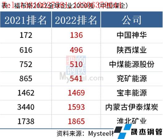 免責聲明:本網站(山東聊城晟杰無縫鋼管廠www.51pvc.cn)刊載的“中國7家煤企上榜福布斯2022全球企業2000強”等均源于網絡,版權歸原作者所有,且僅代表原作者觀點,本文所載信息僅供參考。轉載僅為學習與交流之目的,如無意中侵犯您的合法權益,請及時聯系刪除。本網站刊登此篇文章并不意味著本站贊同其觀點或證實其內容的真實性,我們不對其科學性、嚴肅性等作任何形式的保證。如果侵犯了您的版權,請盡快聯系我們予以撤銷,謝謝合作!
