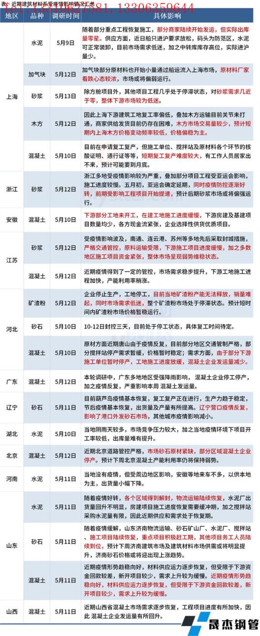 截至5月13日,據(jù)百年建筑網(wǎng)調(diào)研,12個省份建材市場受到了不同程度的影響。近期上海目前對全市建筑工地開展階梯式分類管理,重點聚焦涉疫工地,完善各項疫情防控措施,盡快實現(xiàn)建筑工地社會面清零,為建筑工地全面復(fù)工復(fù)產(chǎn)奠定基礎(chǔ)。加之近期華南地區(qū)雨水天氣來臨,運輸和終端施工進(jìn)度受限,因此建材行情弱勢運行。待全國疫情和汛期有所好轉(zhuǎn),公路、高速等基建項目支撐起一定需求,部分材料的發(fā)運量會有所提升。具體情況如下: