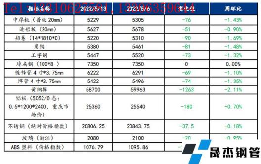 截止2022年5月13日,各原材料當(dāng)日即時(shí)價(jià)格以及價(jià)格周環(huán)比情況如下: