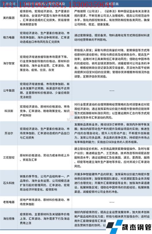 免責聲明:本網站(山東聊城晟杰無縫鋼管廠www.51pvc.cn)刊載的“十大家電上市公司2022年將面臨這些經營風險”等均源于網絡,版權歸原作者所有,且僅代表原作者觀點,本文所載信息僅供參考。轉載僅為學習與交流之目的,如無意中侵犯您的合法權益,請及時聯系刪除。本網站刊登此篇文章并不意味著本站贊同其觀點或證實其內容的真實性,我們不對其科學性、嚴肅性等作任何形式的保證。如果侵犯了您的版權,請盡快聯系我們予以撤銷,謝謝合作!